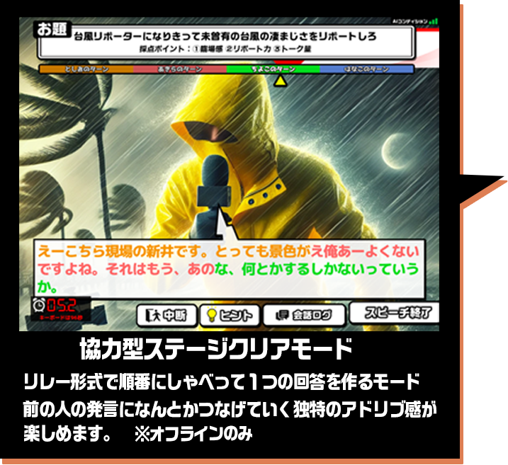 | (将来予定)投稿データ | プレイヤー名+音声+文字起こしテキスト | プレイヤーが「投稿」ボタンを押したとき | 当社サーバー/一部を他プレイヤーへ配信 |